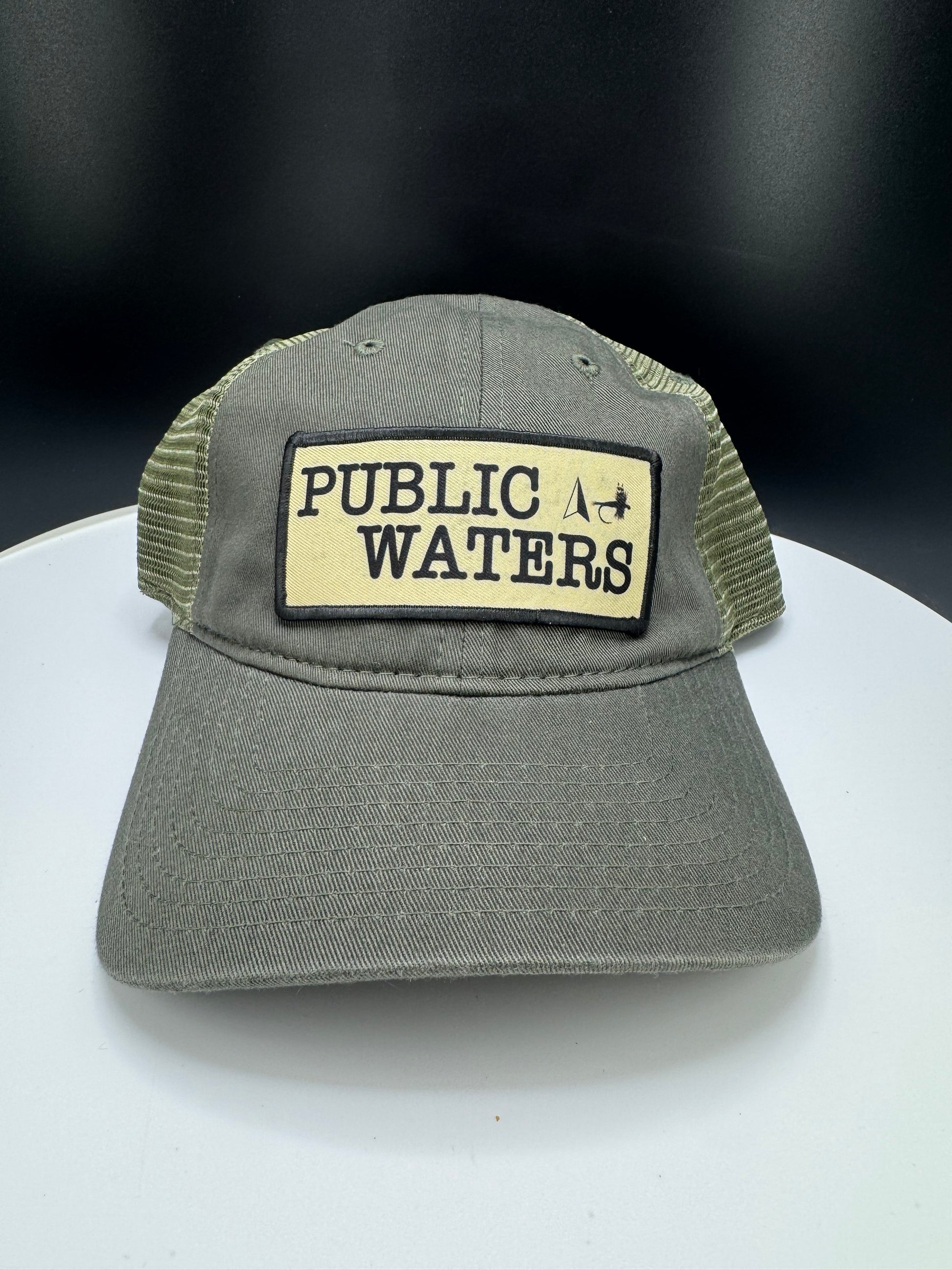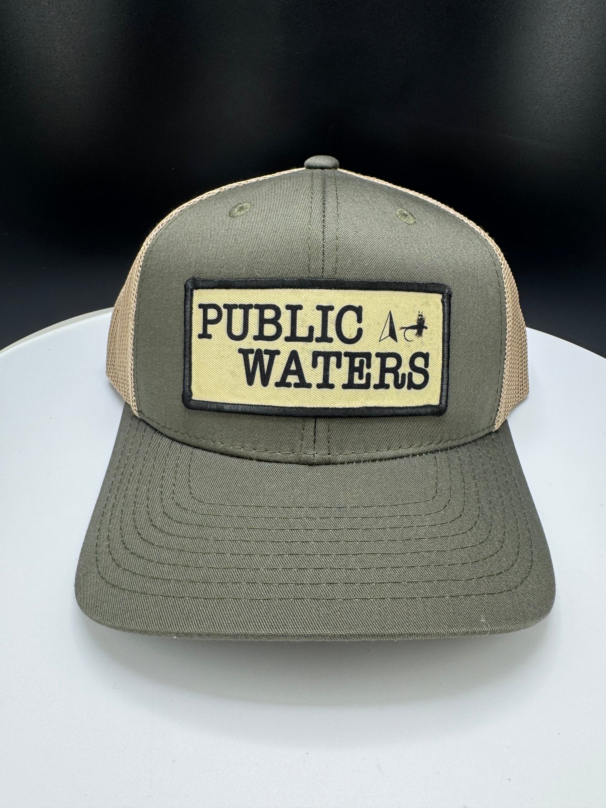 North Fly Apparel patch hats. The Public Waters patch hat, a meaningful two words. Whether it’s a trucker, flat bill or a floating foam bill, there’s a design for you